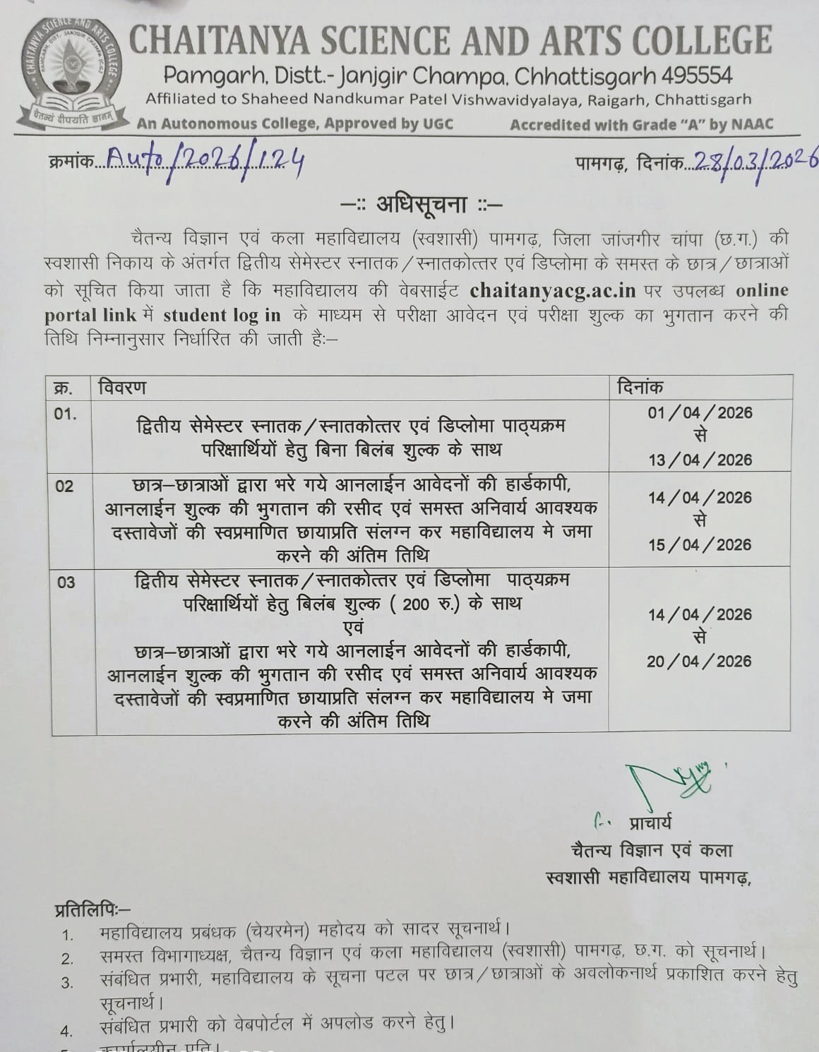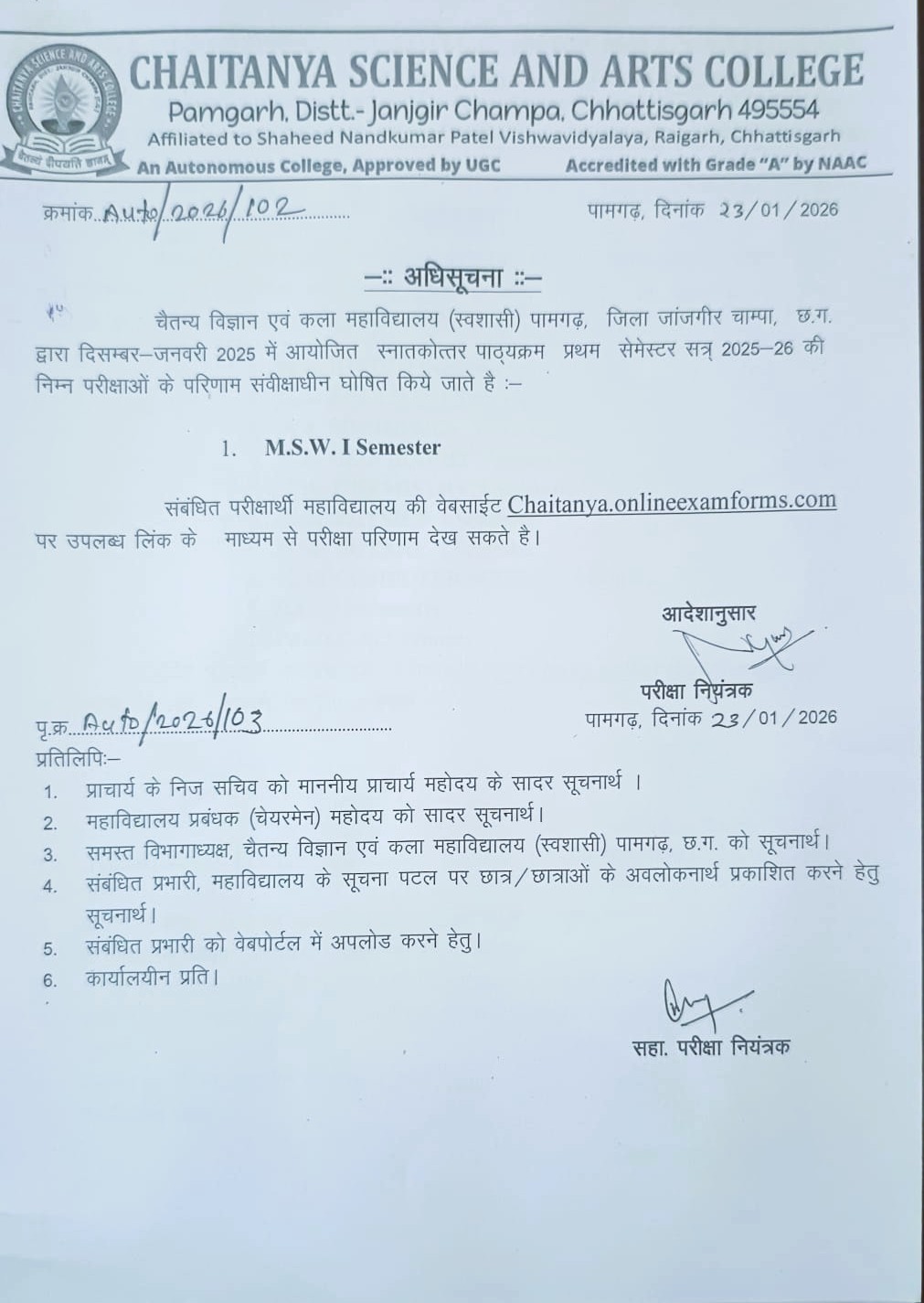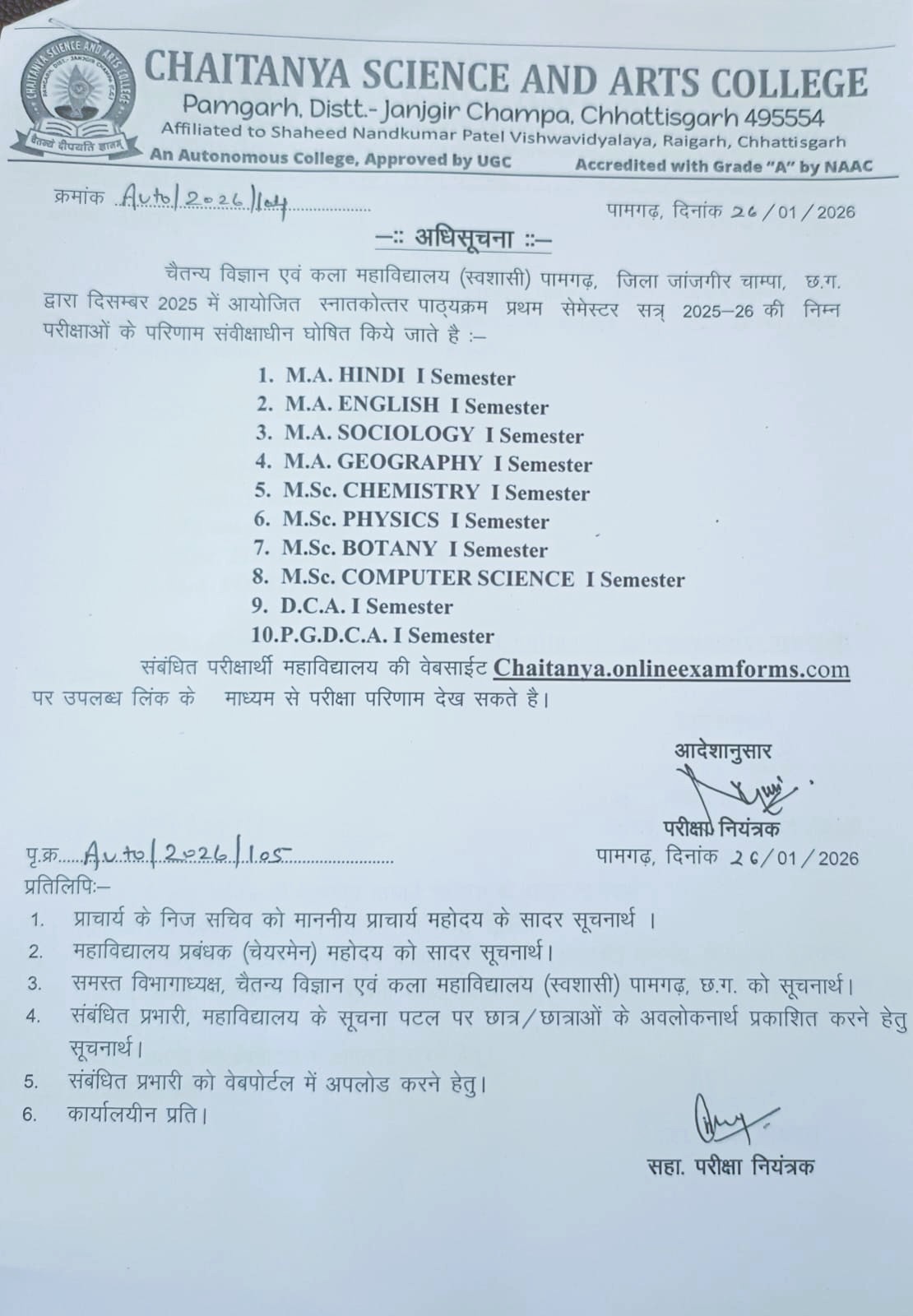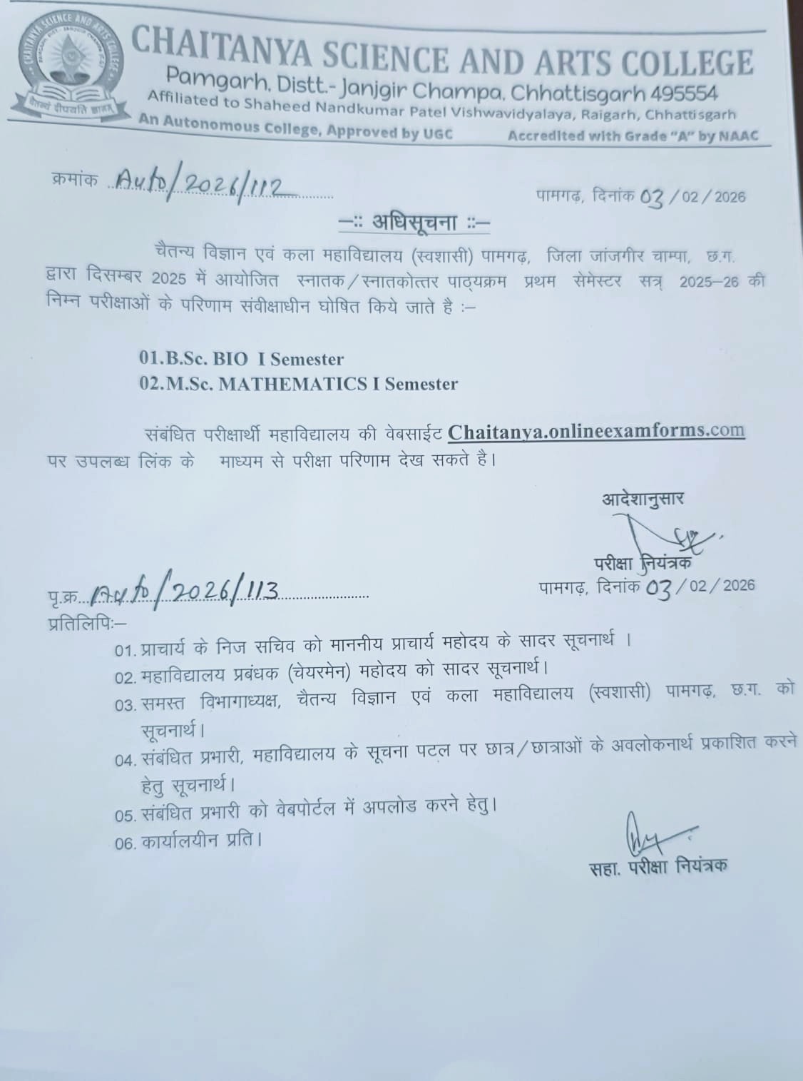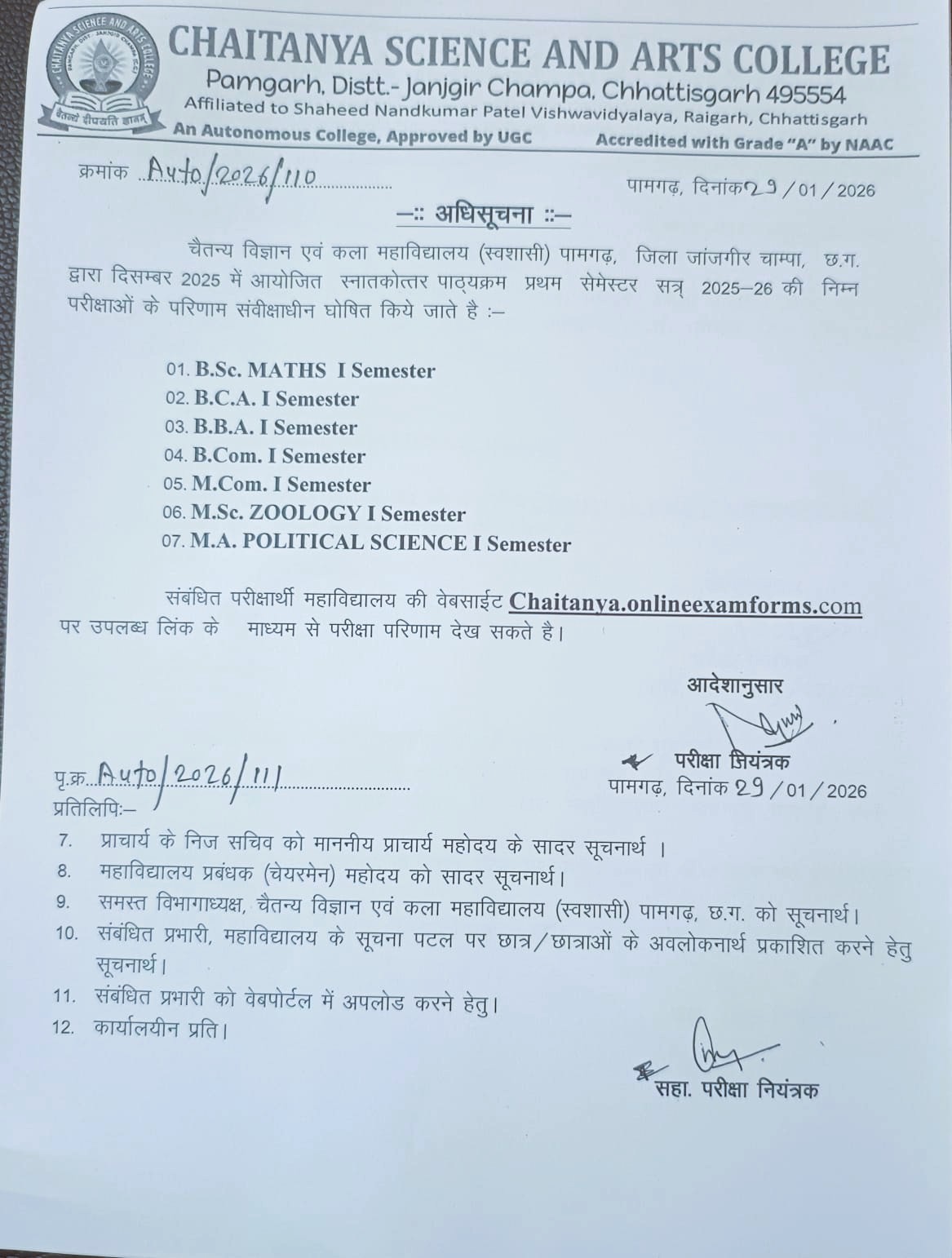 Affiliated to Shaheed Nandkumar Patel Vishwavidyalaya, Raigarh, Chhattisgarh, India