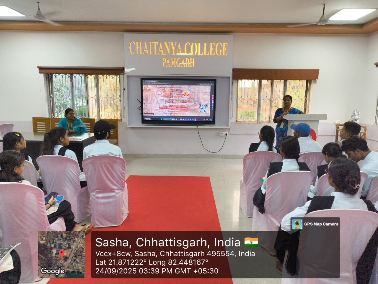 The inauguration of the Value Added Course (VAC) on Indian Knowledge System was successfully organized at Chaitanya Science and Arts College (Autonomous), Pamgarh under the aegis of the IKS Cell. The session was graced by the presence of the distinguished Resource Person, Mr. V. Y. Joglekar, who delivered valuable insights on the significance of Indian Knowledge traditions and their relevance in contemporary times.
