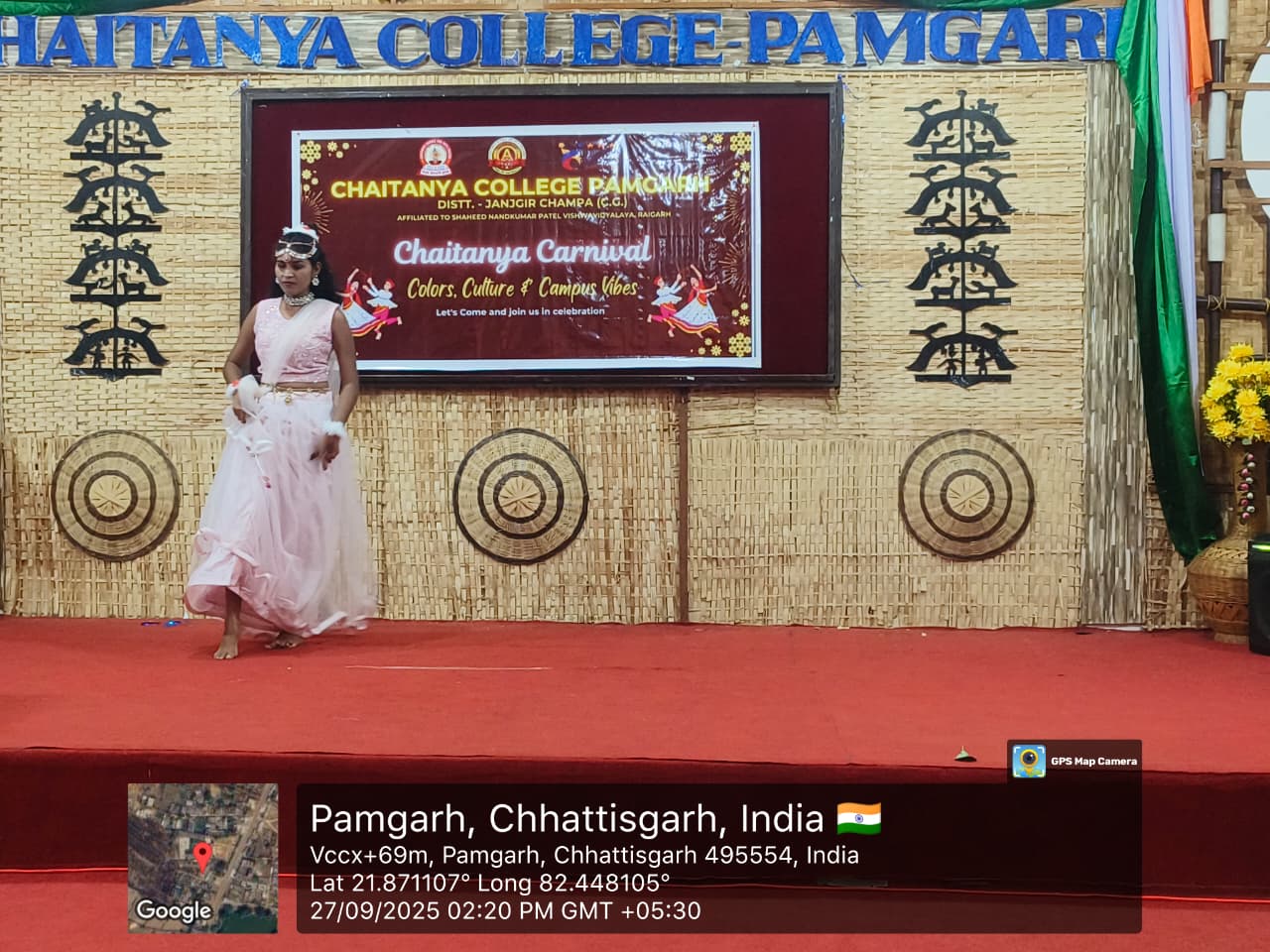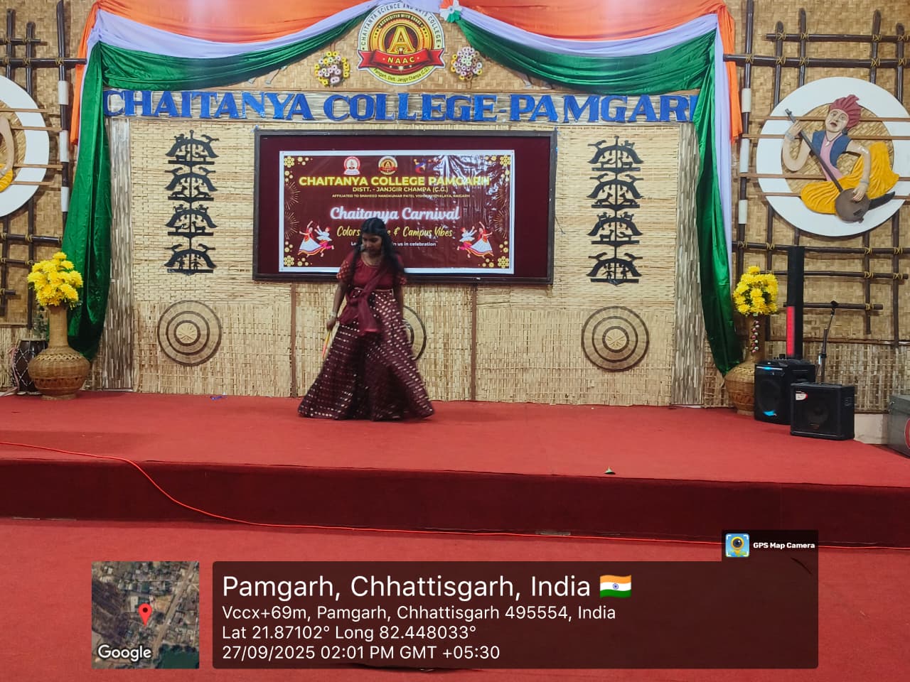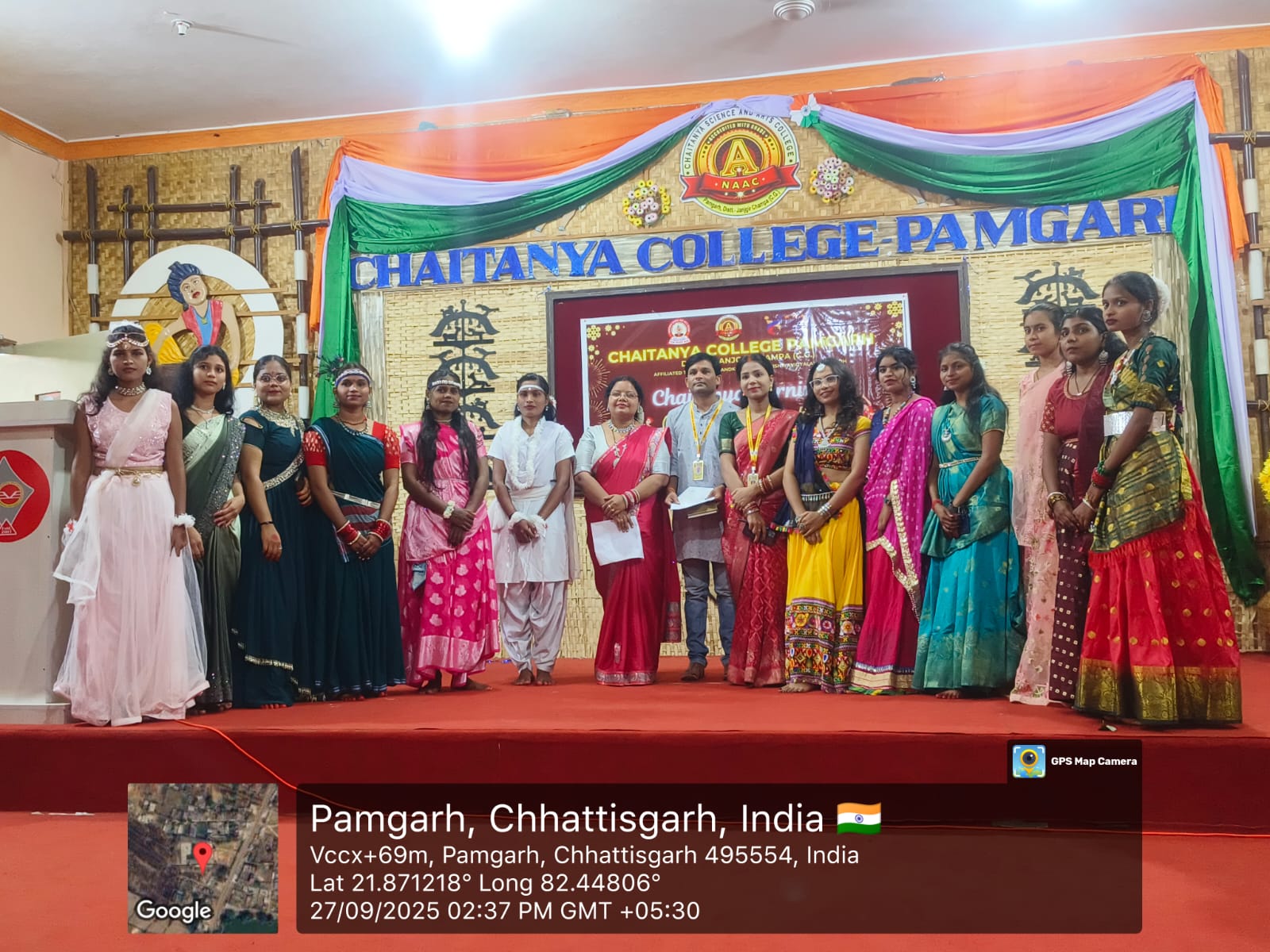 At Chaitanya Science and Arts College, Pamgarh, the Navratri festival was celebrated with great devotion and enthusiasm, reflecting the spirit of culture and tradition on campus. The program commenced with the ceremonial lamp lighting followed by the Durga Aarti, setting a divine and vibrant tone for the occasion. Principal Dr. V.K. Gupta addressed the gathering and highlighted Navratri as a profound symbol of strength, dedication, and self-confidence. He encouraged students to actively balance academic excellence with cultural involvement. Director Mr. Virendra Tiwari inspired everyone with his message of living life as a celebration. The highlight of the evening was the grand Garba and Dandiya performances, where students, dressed in colorful traditional attire, brought the campus alive with music, dance, and cultural vibrance. The event also saw commendable efforts from NCC cadets and volunteers, who efficiently managed discipline and arrangements throughout the celebration. Dr. Garima Tiwari extended heartfelt gratitude to the organizing team and participants, emphasizing that Navratri embodies devotion, unity, cooperation, and the preservation of cultural heritage. The program was successfully coordinated by Assistant Professors Mrs. Chanchal Yadav and Mr. Ashutosh Aditya, whose efforts ensured the event’s smooth execution.