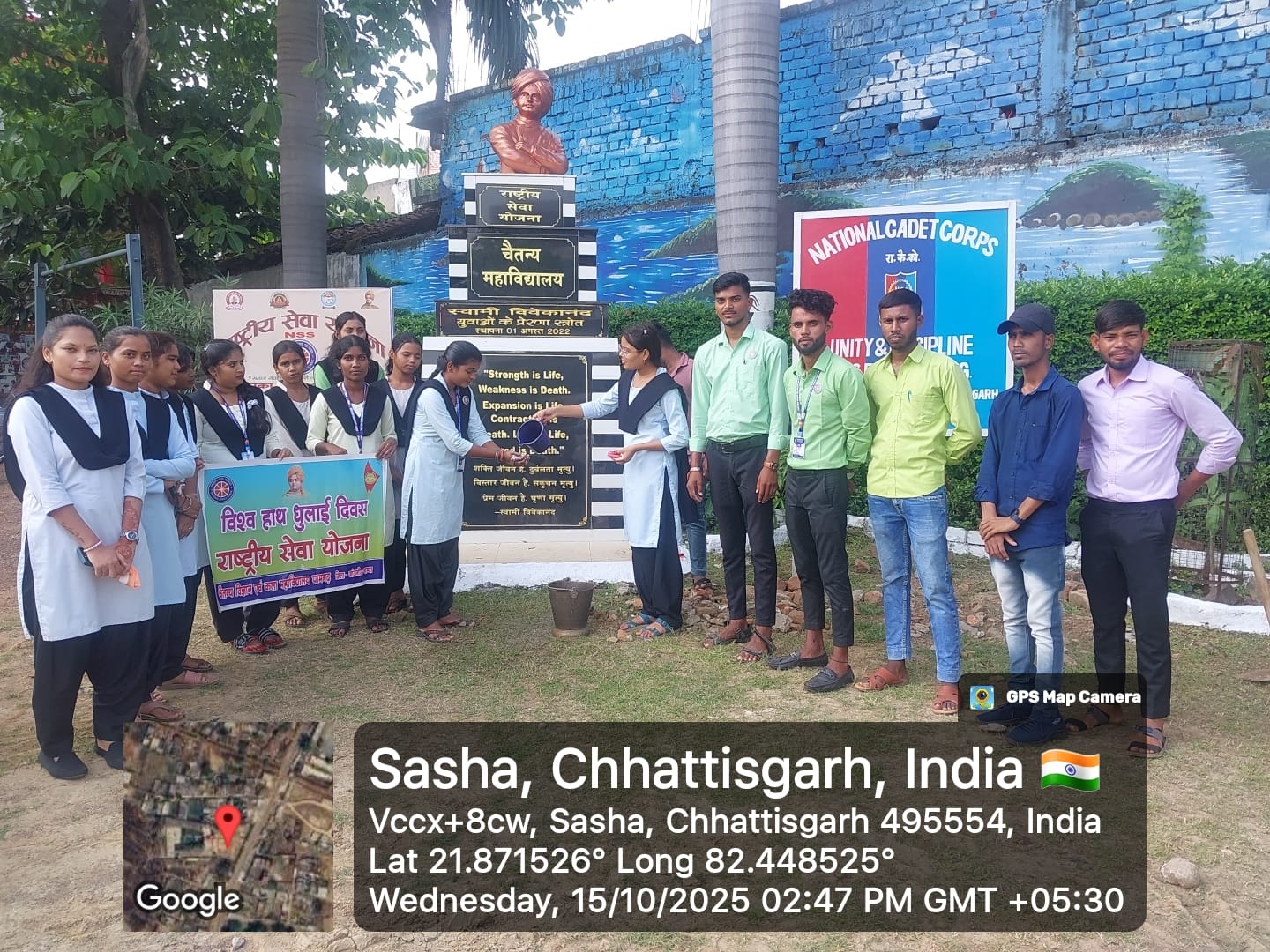 The National Service Scheme (NSS) Unit of Chaitanya Science and Arts College (Autonomous), Pamgarh organized a program on 15th October 2025 to observe Global Handwashing Day. The objective of the event was to create awareness among students regarding the significance of hand hygiene and its role in maintaining public health and disease prevention.