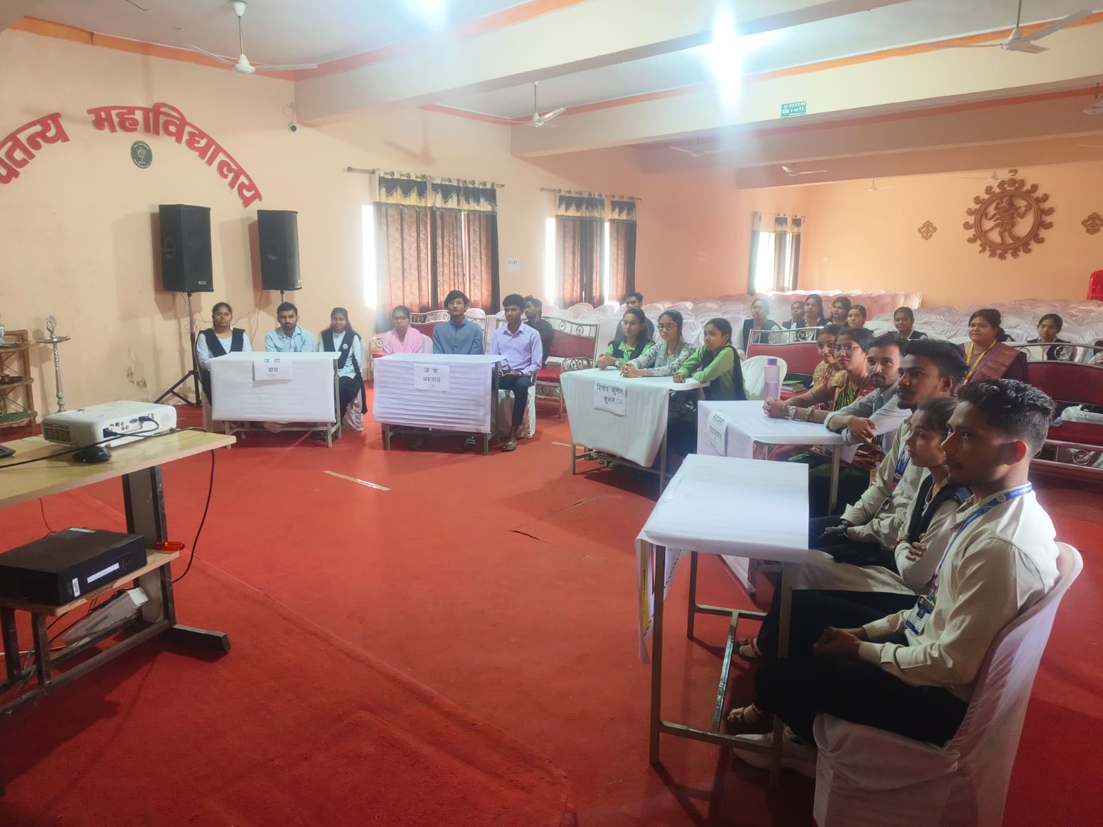 The program was efficiently coordinated and conducted by Dr. Rishabh Dev Pandey, Head, Department of Chemistry, who served as the Quiz Master. Technical support was provided by Dhaneshwar Suryavanshi, Head of the Department of Computer Science. Deepak Jaiswal, Assistant Professor from the Mathematics Department, performed the role of Scorer, while Jhularam Yadav served as the Timekeeper.