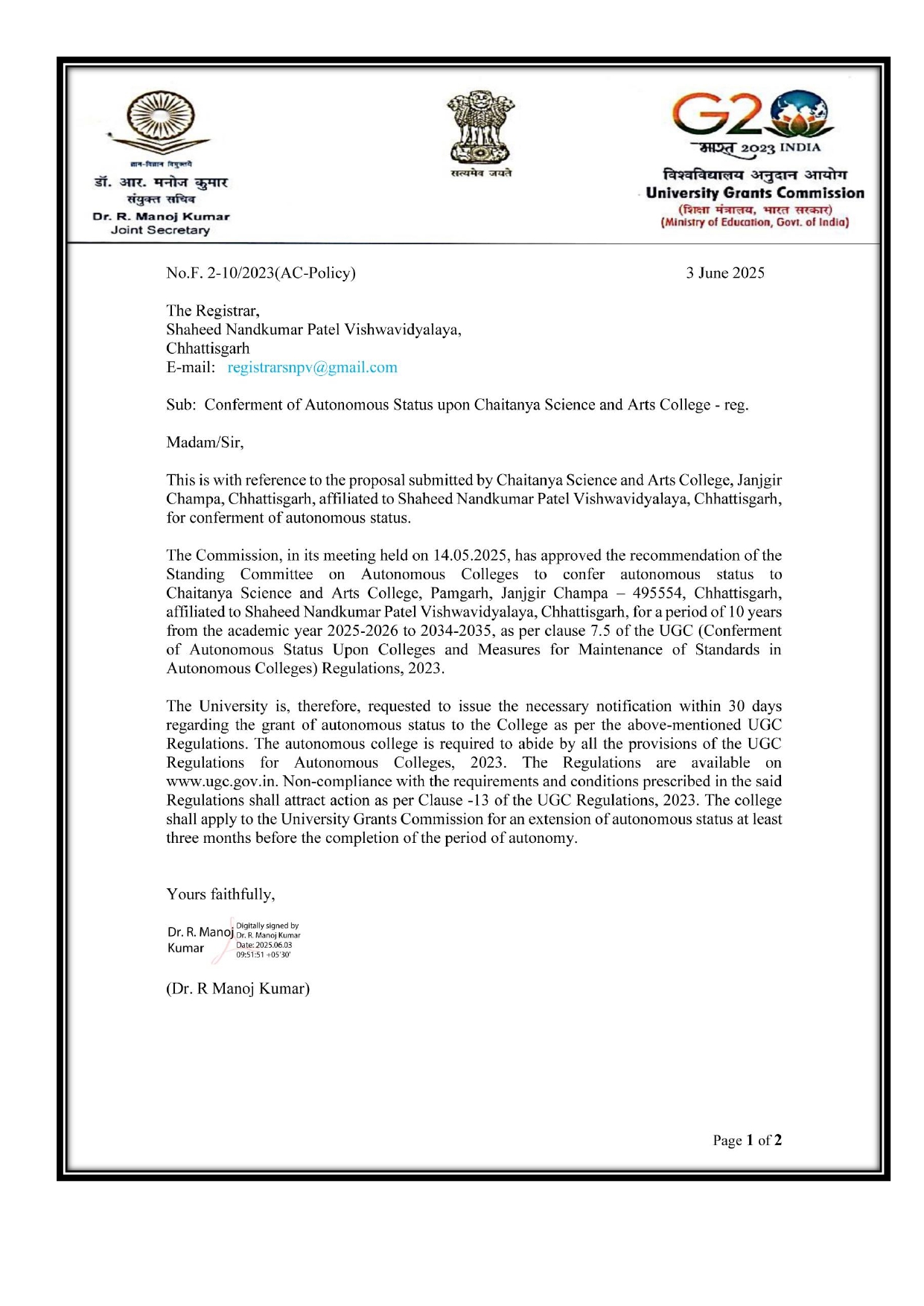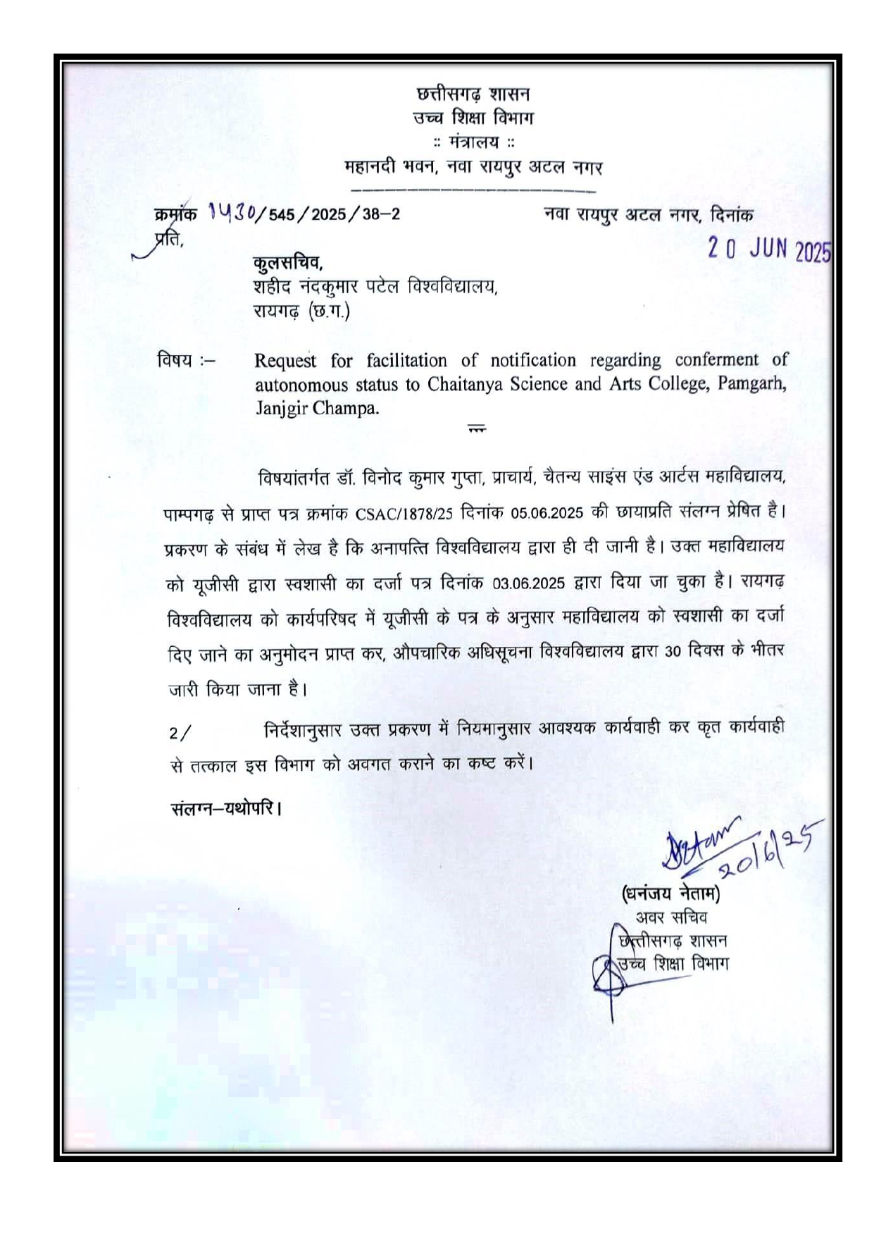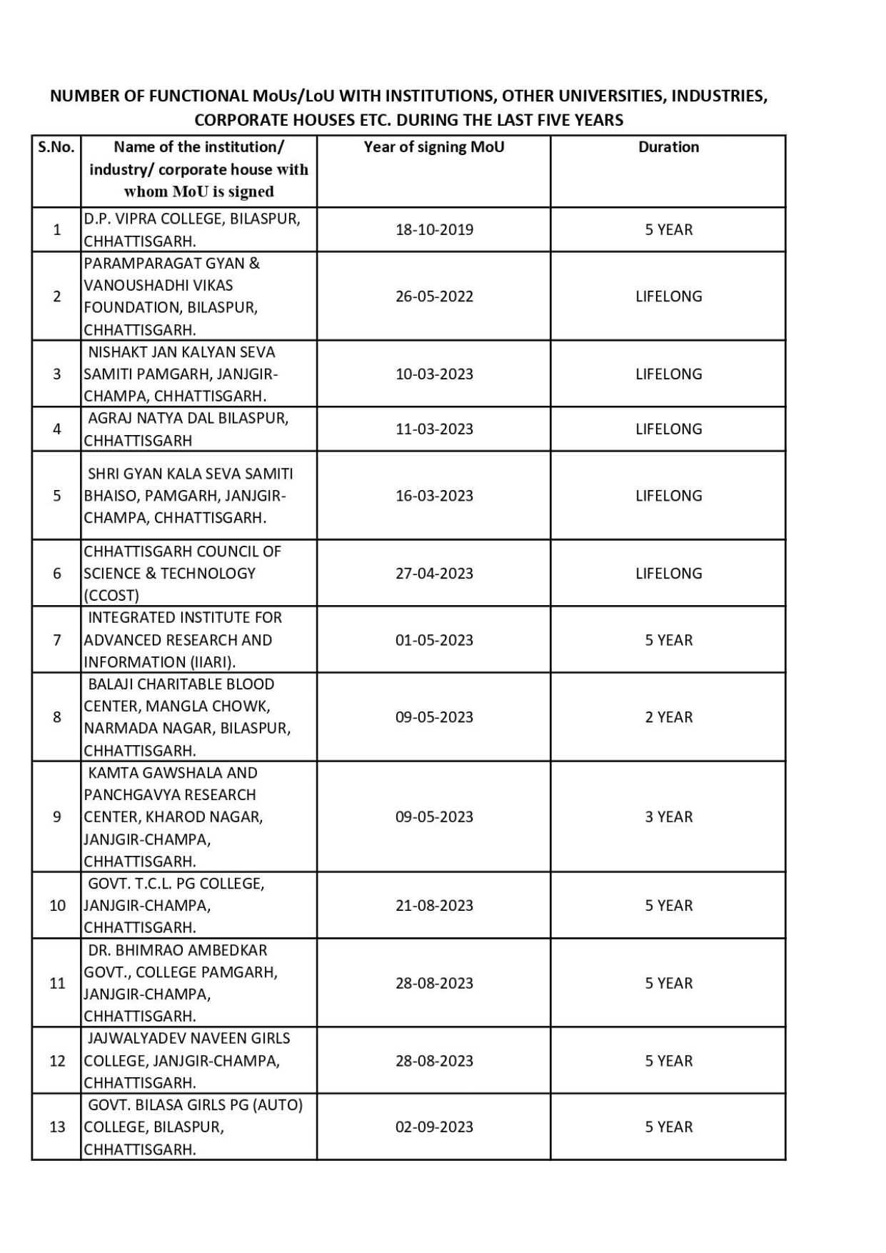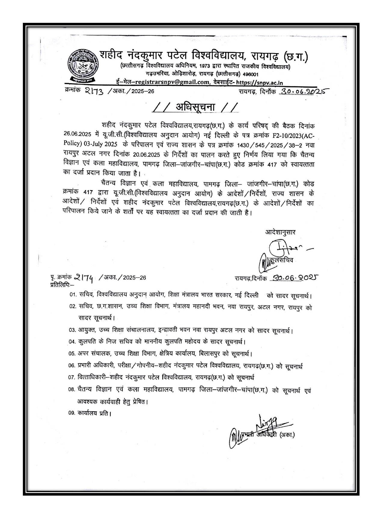 Affiliated to Shaheed Nandkumar Patel Vishwavidyalaya, Raigarh, Chhattisgarh, India